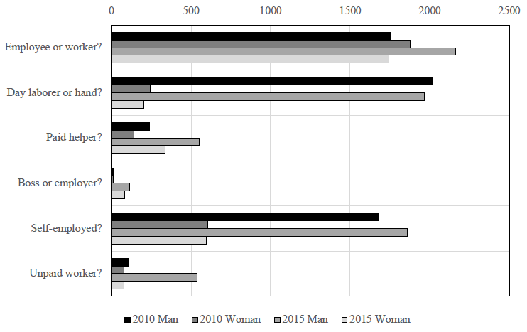 Source: Own calculation based on special processing of microdata from Censo de Población y Vivienda 2010 and Encuesta Intercensal 2015 (Inegi, 2010, 2015).