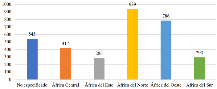 La revisión de la información cuantitativa –a pesar de ser fragmentaria y con probables subregistros– permite confirmar un aumento progresivo en la migración proveniente de África, así como su carácter predominantemente masculino. Esto refuerza los resultados previamente obtenidos en otras investigaciones (Cruz Cinta, 2020; Ray y Leyva, 2020; Mercadal, 2021; Roa, 2021; Navarro Alvarado, 2022; Miranda, 2023; Serra Mingot, 2023; Odgers-Ortiz et al., 2023; Odgers-Ortiz, 2024; Odgers-Ortiz y Olivas, 2024) que emplean otras fuentes y abarcan distintas periodicidades. De igual manera, los datos de la Comar permiten un acercamiento más preciso para conocer los lugares de origen de las personas migrantes, constatando que estos son dispersos y alcanzan la totalidad de regiones del continente africano. Se constata una mayor participación de las regiones Centro y Oeste, identificando los países con mayor presencia: Angola, Senegal, República Democrática del Congo, Camerún, Ghana, Guinea, Nigeria y Burkina Faso.