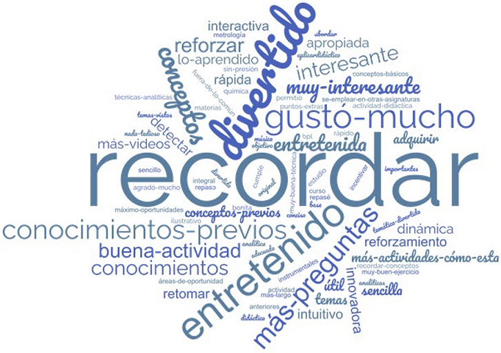 En la nube de palabras mostrada en la Figura 3, se observa que la mayoría de los estudiantes indicó que el CE La Máquina del tiempo les permitió recordar lo que sabían o habían visto en curso anterior, activó sus conocimientos previos de una forma sencilla y divertida.