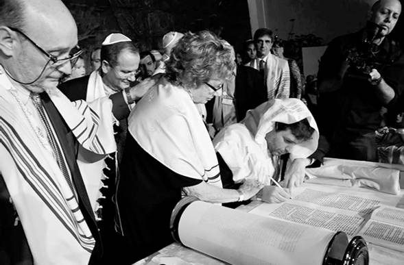 muchas personas que de las 613 mitzvot [preceptos], por lo menos ésta, la pudieron cumplir gracias a que alguien se las acercó. Entonces, yo me propuse, bueno, facilitar a las comunidades la posibilidad de escribir un sefer Torá, hacer un proyecto, un producto, llamémosle así, un proyecto en sí mismo, que pueda ayudarlos a maximizar la llegada a la gente, generar vínculo comunitario, unir a todos en una sola cosa que va a quedar por los siglos (entrevista a Sebastián Grimberg, seminarista y escriba, de 42 años, realizada el 11 de octubre de 2018).