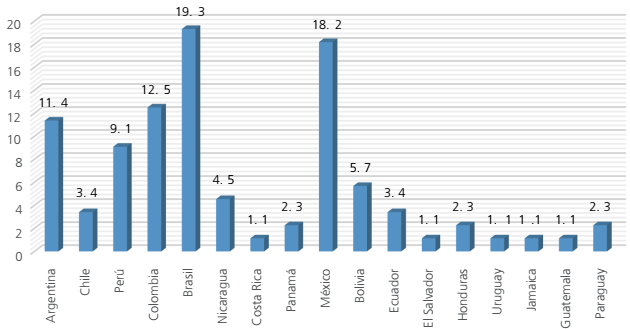 Gráfica 1 Porcentaje de evaluaciones de impacto de programas de superación de pobreza por países de América Latina y el Caribe