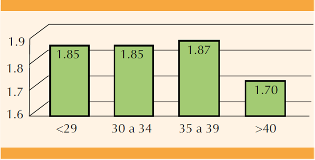 Figura 2 Correlación entre edad de la mujer y concentración de progesterona el día de la aplicación de hCG.