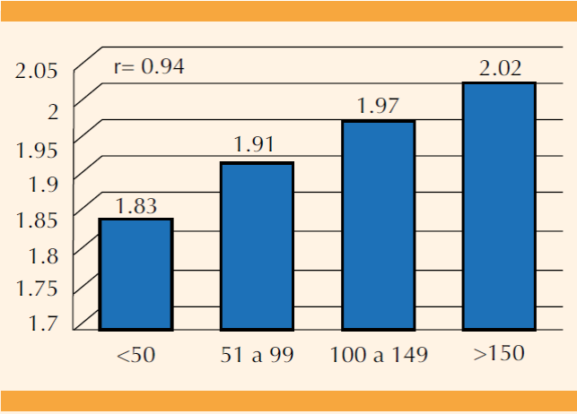 Las principales variables relacionadas con la concentración de progesterona el día de la aplicación de la hCG fueron: IMC (r=-0.96), estradiol basal (r=0.94) y edad de la mujer (r=pico de estradiol [r=0.89]), Figuras 1, 2, 3 y 4. No se encontró correlación con las concentraciones de FSH y LH basales, ni con la dosis total aplicada de gonadotropinas.