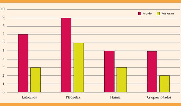 | Hemoderivados | Previo | Posterior | Reducción | p |