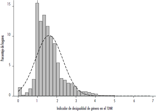 Es necesario, pues, construir un indicador que dé cuenta de la distribución del TDNR por sexo, pero ajustado por la heterogénea composición de los hogares.7
