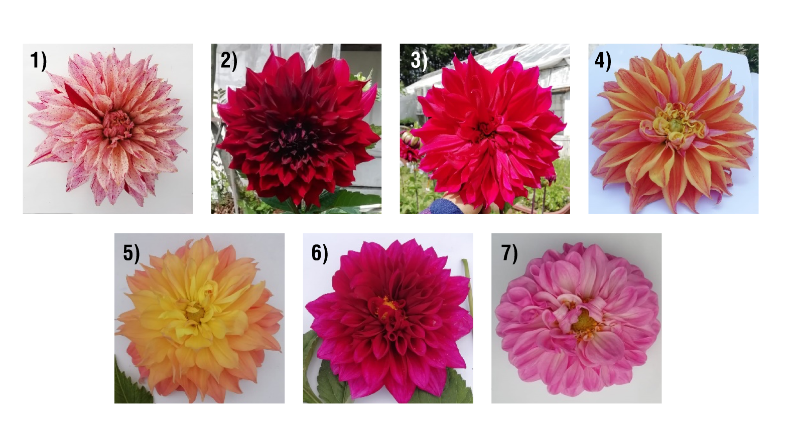 El estudio se realizó en el Departamento de Fitotecnia de la Universidad Autónoma Chapingo, México. El material vegetal consistió en inflorescencias conformadas por flores liguladas y tubulares (capítulos) de siete clones de dalia (D. × hortorum) sembradas en el Campo Agrícola Experimental “San Martín” (19° 29’ 23” latitud norte y 98° 53’ 37” longitud oeste, a 2,246 m s. n. m.), con temperatura y precipitación media anual de 15.6 °C y 608 mm, respectivamente.
