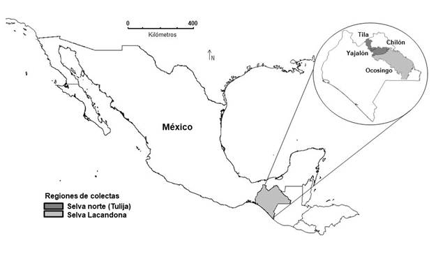 | TCA | Coquijaz alto, Tila | 1800 | 17° 17' 05.40ʺ N, 92° 28' 46.20ʺ W |