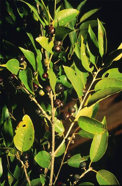 Arboles pequeños o arbustos, de 1‐8 m de alto; tallos hasta de 20 cm de diámetro; ramas usualmente pulverulentas y pruinosas. Hojas opuestas, láminas oblongo‐lanceoladas o elíptico‐ovadas, de 2.5‐7.5 cm de largo, de 2‐3 cm de ancho, el haz verde, lustroso, glabro, el envés más pálido, glabro (en ocasiones cuando las hojas están jóvenes se presenta una pubescencia escasa), con pequeñas manchas negras esparcidas a lo largo de las nervaduras principales, el margen entero o crenado, el ápice obtuso, la base redondeada; pecíolos delgados hasta de 1 cm de largo. Inflorescencias en cimas axilares, de pocas flores o estas solitarias, sésiles o cortamente pedunculadas; sépalos triangulares, de 1.2‐1.8 mm de largo, 1‐1.2 mm de ancho, glabros, con glándulas oscuras a lo largo del margen; pétalos blancos a amarillentos, de 1‐