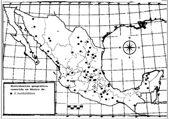 Distribución. México: Sur de Sinaloa, Nayarit, Jalisco, Aguascalientes y Zacatecas. Fig 13.