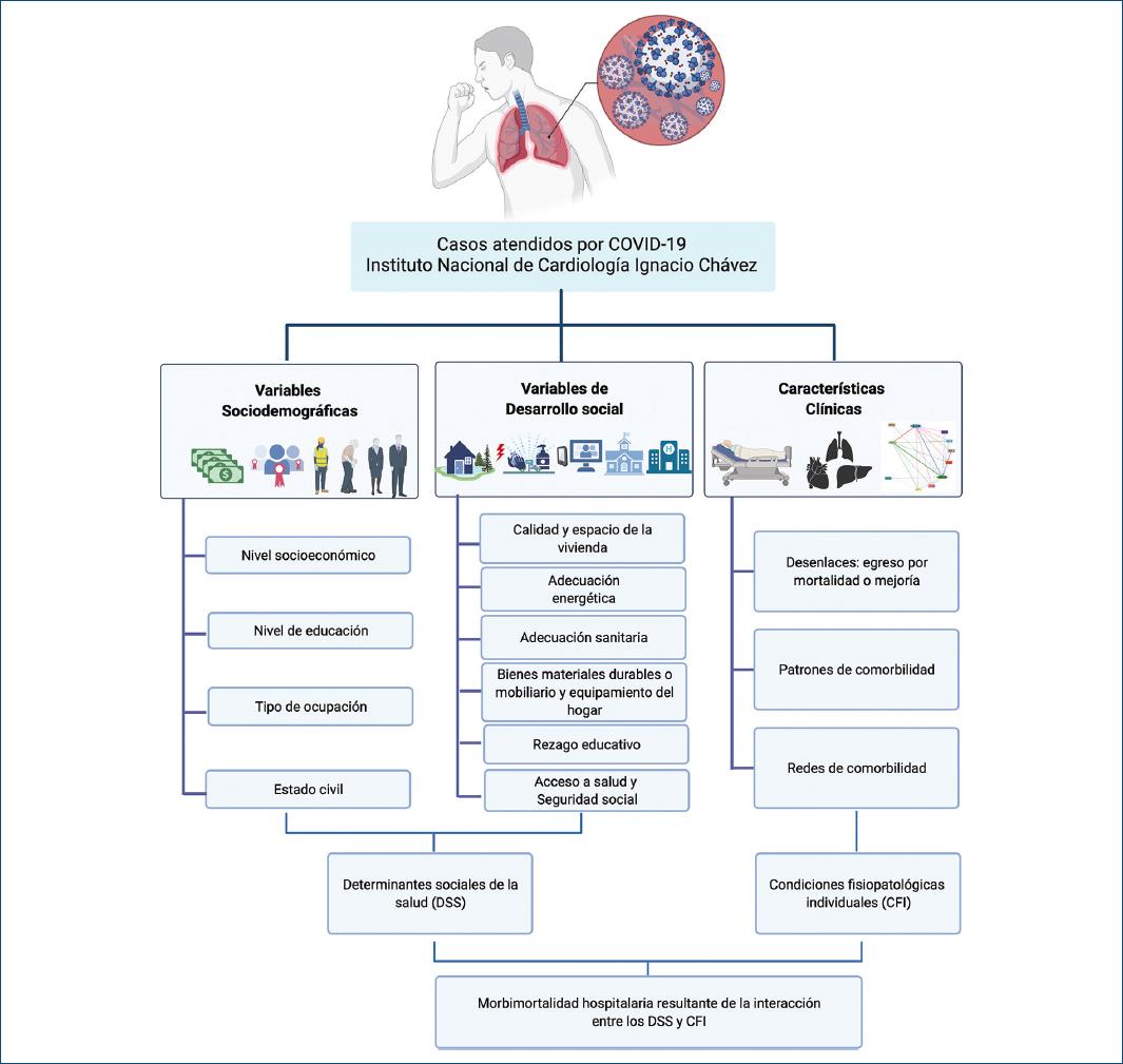 Las condiciones sociales y demográficas se estudian con frecuencia utilizando indicadores socioeconómicos como el ingreso, la educación, la ocupación y el desarrollo social14-18. Sin embargo, recopilar esta información es un desafío porque se carece de datos sistemáticos a nivel individual que puedan capturar completamente la relación multidimensional entre estos y la salud19. Los problemas son aún más complicados cuando se pretende realizar una investigación de enfermedades infecciosas en medio de una emergencia sanitaria causada por una infección aguda novel, como es el caso de la COVID-1920. Por lo tanto, el propósito del presente estudio es caracterizar las condiciones sociales, demográficas y de morbimortalidad de los casos atendidos en el Instituto Nacional de Cardiología Ignacio Chávez (INC-ICh) en la Ciudad de México (CDMX), por la enfermedad causada por el SARS-CoV-2.