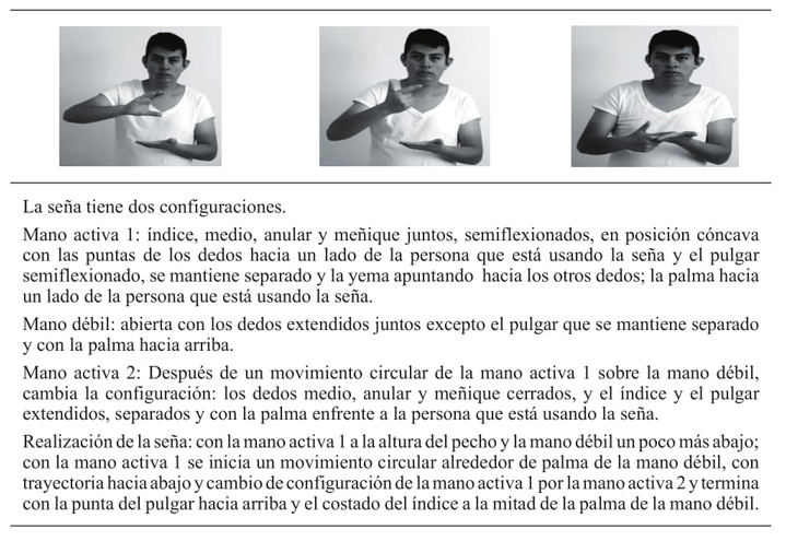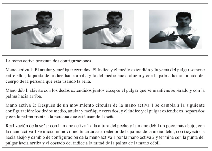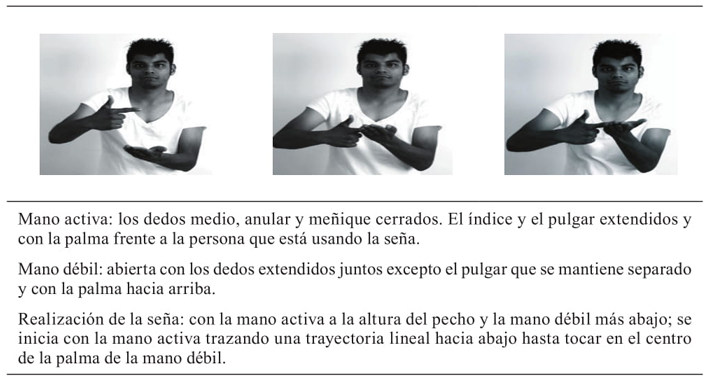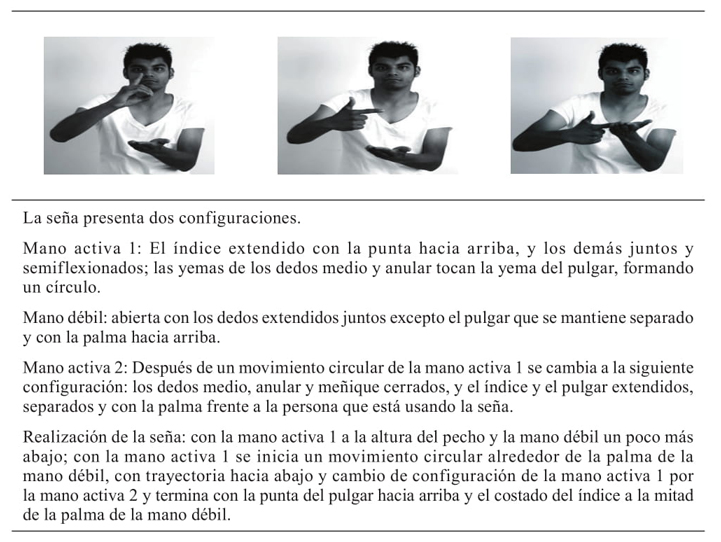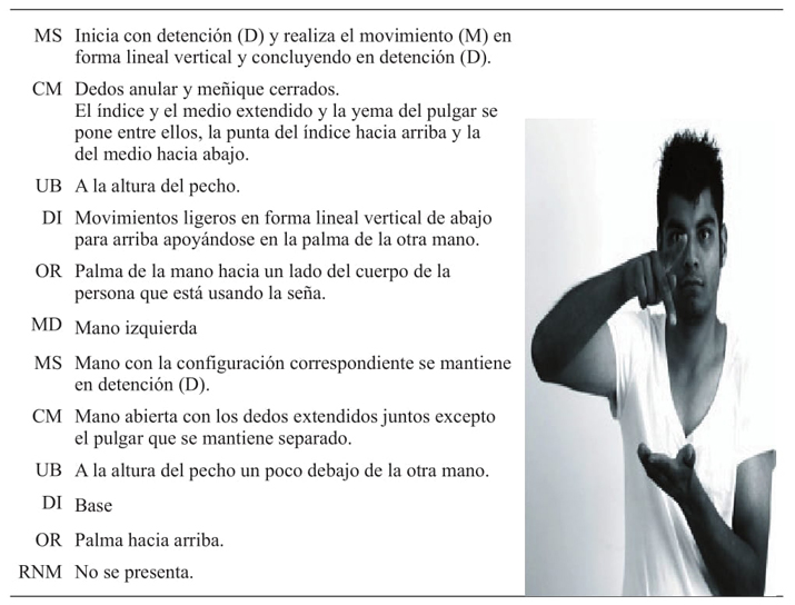En la Figura 1, se presenta el ejemplo de una seña (peso), con el fin de mostrar los tres segmentos, así como sus correspondientes elementos.