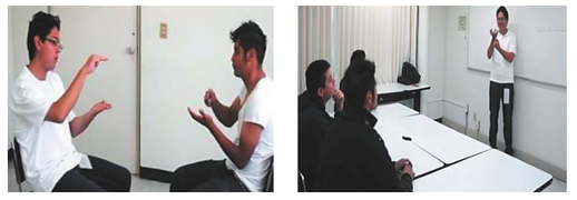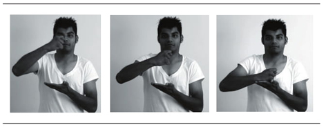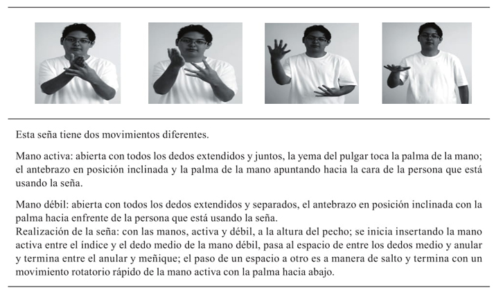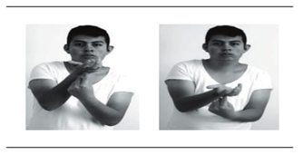 Los estudiantes, requirieron de interpretación en LSM en todas las actividades diseñadas y desarrolladas en los tres procesos de la investigación en el aula. Es decir, las interacciones comunicativas entre el IME, no competente en la misma, y los estudiantes, fueron mediadas por la lengua accesible para cada uno de ellos. Por otro lado el informante, “...persona sorda conocedora del lenguaje gestual” (Rodríguez, 1992) (véase Figura 5) solamente fue consultado respecto a las señas construidas y propuestas por el grupo, relacionadas con las nociones matemáticas, a fin de obtener la aprobación de la comunidad sorda de las señas propuestas.