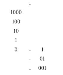 ...por ejemplo, los números obtenidos por subdivisión de cada intervalo unidad en 10, luego en 100, 1000, etc., segmentos iguales. Los puntos así obtenidos corresponden a <<fracciones decimales>>; p. ej., 0.12 = 1⁄10 + 2⁄100 corresponde al punto situado en el primer intervalo unidad, en el segundo subintervalo de longitud 10-1, y en el origen del tercer <<sub-sub>> intervalo de longitud 10-2. (a -n significa 1⁄10 n ). Si una fracción decimal contiene n cifras después del punto, tiene la forma: f = z + a 1 10-1 + a 2 10-2 + a 3 10-3 + ... + a n 10 -n , donde z es un entero y la a son cifras (0, 1, 2, ..., 9) que indican las décimas, centésimas, y así sucesivamente. El número f se representa en el sistema decimal en la forma abreviada z, a 1 a 2 a 3 ... a n . (p. 6).