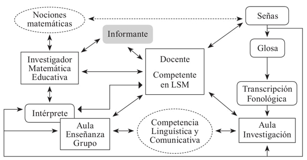 Respecto al método, se utilizaron tres procesos de la investigación en el aula: enseñanza -las actividades diseñadas y realizadas con la presencia de materiales concretos y las acciones sobre objeto-, gracias a ella se obtuvieron indicios de compresión de las nociones sobre partición decimal reiterada y del sentido de la unidad de medida: gramo. El modelo de comunicación diseñado resultó un apoyo fundamental para la comunicación con los Sordos, usuarios de LSM y los oyentes, no competentes; la indagación -la comunicación entre pares- es uno de los elementos significativos, ya que favorece un contexto eficiente en el desarrollo de habilidades comunicativas, y la investigación -las transcripciones fonológicas de las señas propuestas-, permite avanzar hacia una posible caracterización de las mismas y diseñar estrategias de enseñanza para la adquisición de las nociones con base en su uso.