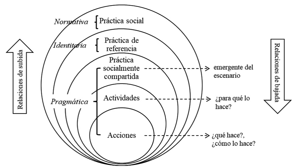 Figura 1 Modelo de anidación de prácticas. Adaptado de (Cantoral, Montiel y Reyes-Gasperini, 2015: 13)