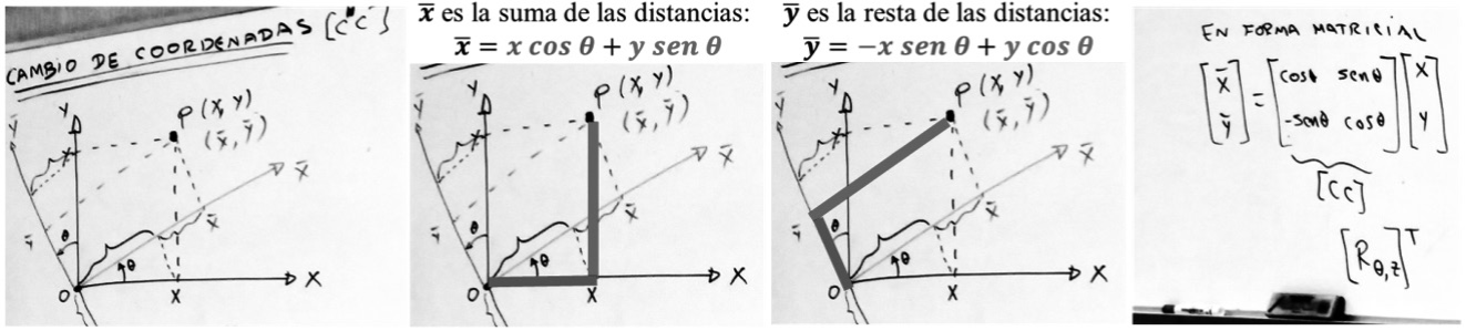 Fotografía 3 Matriz de cambio de coordenadas explicada por el profesor en el pizarrón