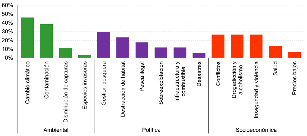 Gráfica 1 Problemáticas de las pesquerías de pequeña escala en México identificadas por las y los jóvenes.
