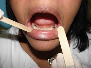 Dexamethasone rinse was prescribed, and the patient was referred to the Referral Service of the Hospital de las Clínicas-Salvador, Bahia, where she was treated with steroids and antifungals agents. Treatment with Prednisone (20 mg), Dapsone (100 mg), Fluconazole (150 mg), and Albendazole (400 mg) was started. Due to the persistence of lip lesions, Prednisone (60 mg) was administered, and the doses were gradually decreased until discontinued. Subsequently, pulse therapy with methylprednisolone (1 g) was performed for seven months.
