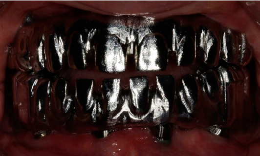 La tecnología CAD/CAM, nos permite hacer caras oclusales metálicas fresadas que ayudan a mantener la dimensión vertical. Al mismo tiempo, nos da como resultado un metal libre de burbujas y con un mejor ajuste en las conexiones, con lo que se reducen las complicaciones mecánicas como las fracturas a largo plazo, a costos competitivos. No obstante, exige la elaboración de la prueba de resina para poder confirmar la prueba estética, la fonética y la pasividad de las prótesis fijas sobre implantes, especialmente en la oclusión ya que, una vez terminadas las caras oclusales en metal, pueden hacerse sólo pequeños ajustes en la oclusión.