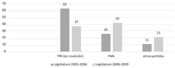 Sin embargo, solo le duró tres años esta ventaja, puesto que, en las elecciones intermedias del 2006, una vez más el PAN tendría más asientos legislativos y el gobernador tuvo por primera vez un gobierno dividido. Es menester hacer hincapié en que parte de las razones por las cuales el PRI no refrendó la mayoría, en buena medida fue por la situación de inseguridad que prevaleció en el estado, como ha sido evidenciado en Medellín (2016, p. 2017).