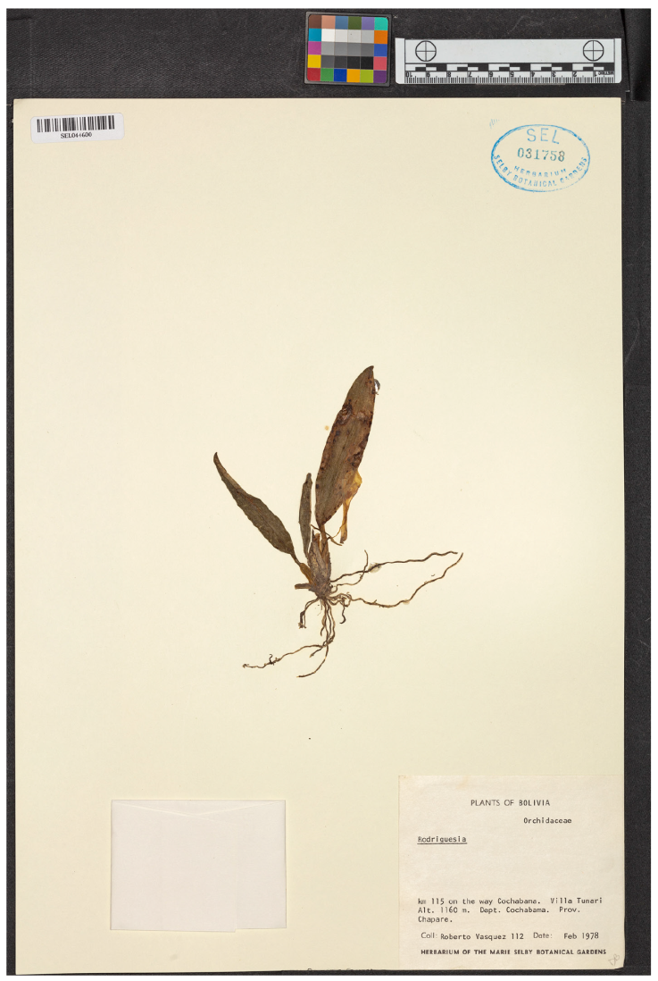 Figura 5 Holotipo de Rodriguezia vasquezii (Vásquez 112, SEL).