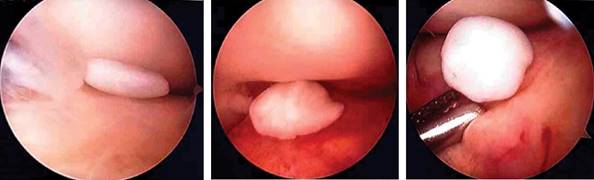 Con el avance de la tecnología, la extracción de fragmentos condrales a través de artroscopia ha incrementado en los últimos años debido a sus diversas ventajas sobre la cirugía abierta, entre ellas, un menor tiempo quirúrgico, evita daño macroscópico del tejido sano proporcionando menor morbilidad y rehabilitación postoperatoria temprana. Se recomienda combinar con sinovectomía, lo que reduce el índice de recurrencias menor a 1%.2
