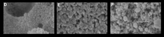Figura 2 Micrografía de SEM de las nanopartículas de ZnO+Ag1% asistidas con diferentes extractos de plantas. D) ZnO/Ag-Lt; E) ZnO-Fc; F) ZnO/Ag-Fc. Lg= Lippia graveolens, Lt= Larrea tridentata, Fc= Flourensia cernua.