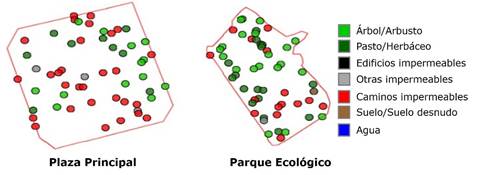 En la Figura 3 se muestra la distribución de las clases de coberturas en los dos espacios abiertos evaluados.
