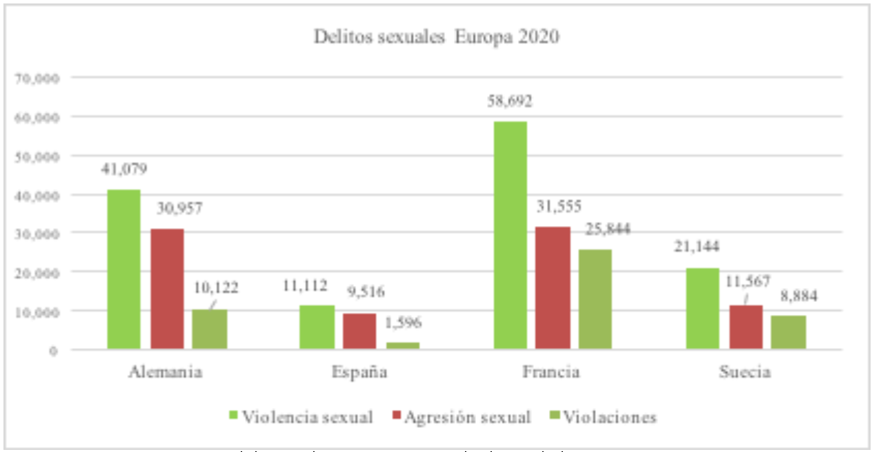 Figura 2: Prevalencia de delitos sexuales de 4 países europeos en 2020