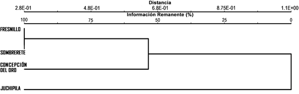 Se analizaron cuatro comunidades de bosque de pino piñonero en distintos municipios del estado de Zacatecas: