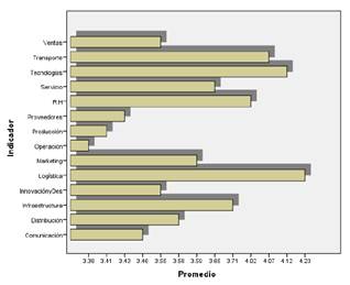 En este sentido los deducciones se muestran en la figura 4, es importante mencionar que los resultados son el promedio tanto de los indicadores de la cadena de valor como de la cadena de suministros.