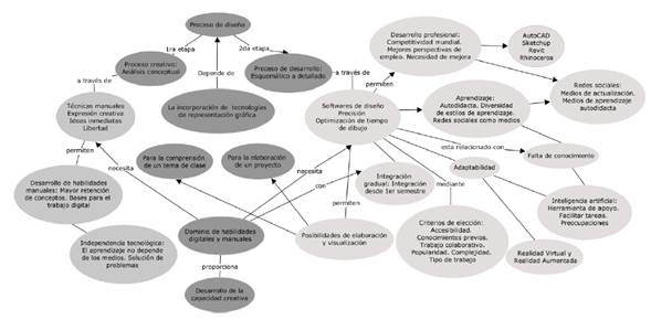 La presente investigación de enfoque mixto permitió explorar a profundidad las condiciones de incorporación de herramientas digitales en un contexto educativo universitario de México, a través de la percepción de los estudiantes de arquitectura. Esta percepción indica que la incorporación de software de diseño, además de incluir la integración gradual semestral de acuerdo con las necesidades de los estudiantes, también está determinada por el propio proceso de diseño. La utilización de software de diseño depende de las características del proceso de diseño. Asimismo, su uso presenta limitaciones como la falta de conocimiento y las posibilidades que ofrece determinado software, sobre el cual se requiere inicialmente de tiempo para familiarizarse con él.