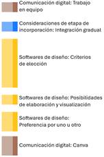 • Para la elección de software, los estudiantes señalaron que tienen que valorar los pros y contras de cada uno, de acuerdo con el trabajo que vayan a realizar. Valorar lo que el software les permita realizar y con qué facilidad, si permite realizar modelos en 3D o trabajos en equipo o en línea. Tienen preferencia por la plataforma Canva para realizar sus presentaciones, láminas o carteles, ya que pueden trabajar en equipo en tiempo real y tiene diversas opciones de diseño a diferencia de otras herramientas, entre las que comentaron como PowerPoint o Presentaciones de Google.