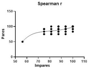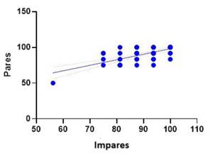 En cuanto a la correlación de las dos mitades, el coeficiente de Spearman fue de 0.622 (p<0.0001), con un intervalo de confianza del 95%, el cual fue [0.4112 a 0.7697]. En las gráficas de las figuras 1 y 2, se observa una correlación positiva entre los bloques de preguntas.