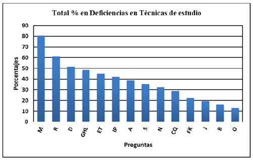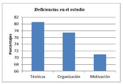 Figura 1 Porcentajes más altos en deficiencias en técnicas, organización y motivación para el estudio
