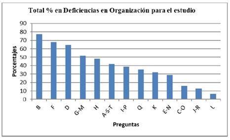 Porcentajes totales en falta de organización para el estudio.
