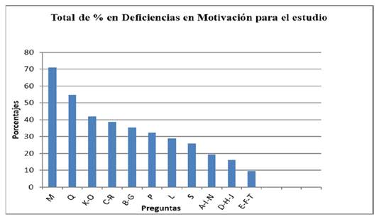 Porcentajes totales en falta de motivación para el estudio.