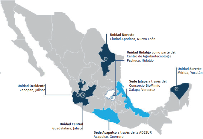 En el 2016, la institución cumple 40 años impulsando el desarrollo tecnológico y transferencia de tecnología del país mediante la generación de conocimiento de vanguardia y la aplicación innovadora de la biotecnología. El CIATEJ cuenta con cuatro unidades de investigación en las ciudades de Guadalajara y Zapopan, Jalisco (Unidad Central y Zapopan, respectivamente); Mérida, Yucatán (Unidad Sureste) y Apodaca, Nuevo León (Unidad Noreste). Como parte de la estrategia de crecimiento institucional, el CIATEJ cuenta con un equipo de investigadores en la ciudad de Acapulco, Guerrero, en el proyecto regional denominado Alianza Estratégica para el Desarrollo Sustentable de la Región Pacífico Sur (ADESUR); y en la ciudad de Xalapa, Veracruz, en el consorcio denominado Bio-Mimic. En el centro del país el CIATEJ tendrá presencia dentro del marco del proyecto “Ciudad del Conocimiento”, al formar parte del Centro de Agrobiotecnología en la ciudad de Pachuca, Hidalgo, en conjunto con el Centro de Investigación en Alimentación y Desarrollo, A.C. (CIAD).
