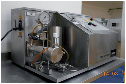 Contamos con tecnología de vanguardia en proyectos de I+D+i relacionados con la generación de nanopartículas y nanocápsulas empleando la tecnología de secador por aspersión a escala nano (Figura 2), la cual permite obtener partículas en polvo de 1 a 2 órdenes de magnitud menores a los equipos convencionales de secado por aspersión; o en proyectos de encapsulación de principios bioactivos de baja solubilidad mediante la optimización de nanoemulsiones y nanosuspensiones (Figura 3).