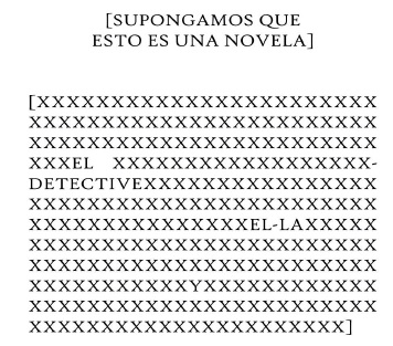 En esta imagen vemos cómo Valencia juega entre los géneros en un sentido amplio, al relacionar los cromosomas XX-XY asociados a la binarización de género en un continuo en el que no sabemos dónde detenernos, en el que la Y (asociada en el binarismo a la masculinidad biológica) se presenta como una extrañeza y donde el detective aparece acompañado de los artículos del castellano para femenino y masculino. “Supongamos”, nos dice la autora, “que esto es una novela”. Y el eco, como vimos antes, es para suponer que hay identidad, en un sentido amplio ante el contínuum desapropiado de la escritura y la vida misma.
