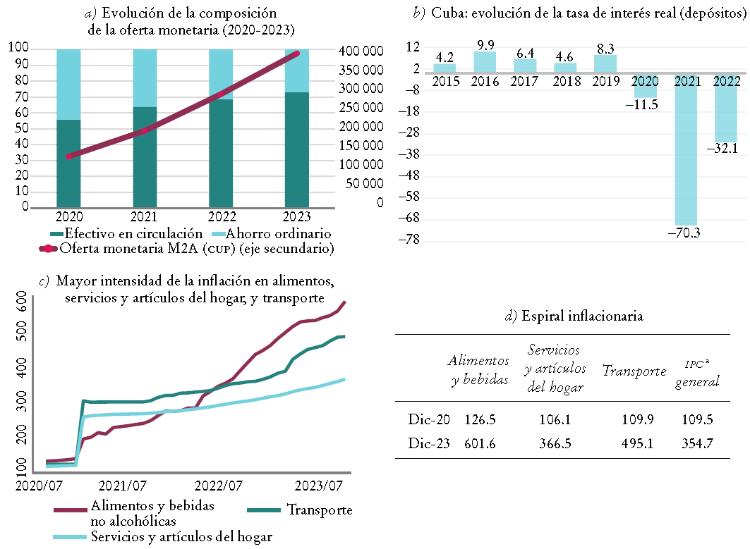 En Cuba, el típico dilema de un programa antiinflacionario en condiciones de recesión puede agravarse debido a varios factores. En primer lugar -el punto de partida-, la profundidad de la crisis reduce los espacios de maniobra de los hacedores de políticas para ajustar la absorción doméstica. En segundo lugar, las fuertes restricciones de acceso a financiamiento externo. Finalmente, la dimensión del sector público que en 2023 capturaba más de 60% de la población económicamente activa.