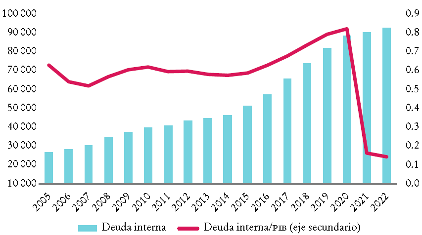 Gráfica 5 Evolución de serie de la deuda interna de Cuba en 2005-2022