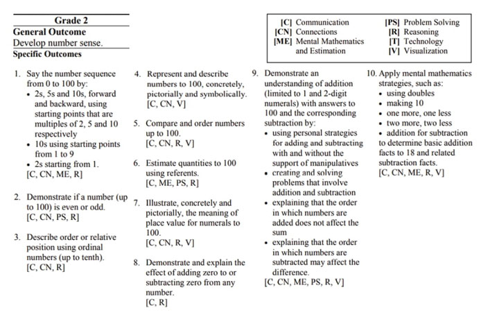 A Grade Comum Curricular (CCF) (Alberta Education, 2006) constitui uma base curricular comum de matemática adotada por sete das dez províncias e pelos três territórios canadenses (Simmt, 2018). O documento canadense, que contem-pla o ensino de matemática na etapa fundamental de escolaridade, afirma que a educação matemática tem como objetivo preparar os alunos para: