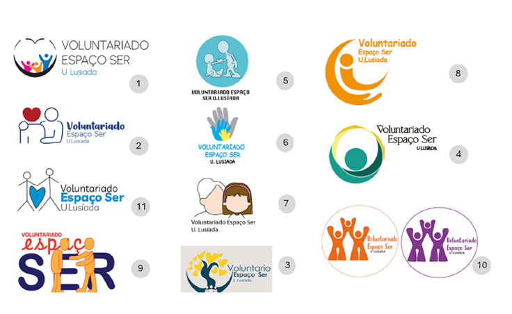 Los proyectos 3, 4, 8 y 10 se consideraron poco relevantes, ya que presentaban dificultades para conectar y transmitir los valores de la marca y su identificación como centro de ayuda. Voluntariado Espaço Ser es un programa reciente, por lo que comunicar la tradición puede no ser tarea fácil, salvo por el uso de los colores institucionales de la Universidad Lusíada do Porto (azul y amarillo) que se presentan en las propuestas 1, 2, 3, 5, 6, 9 y 11.