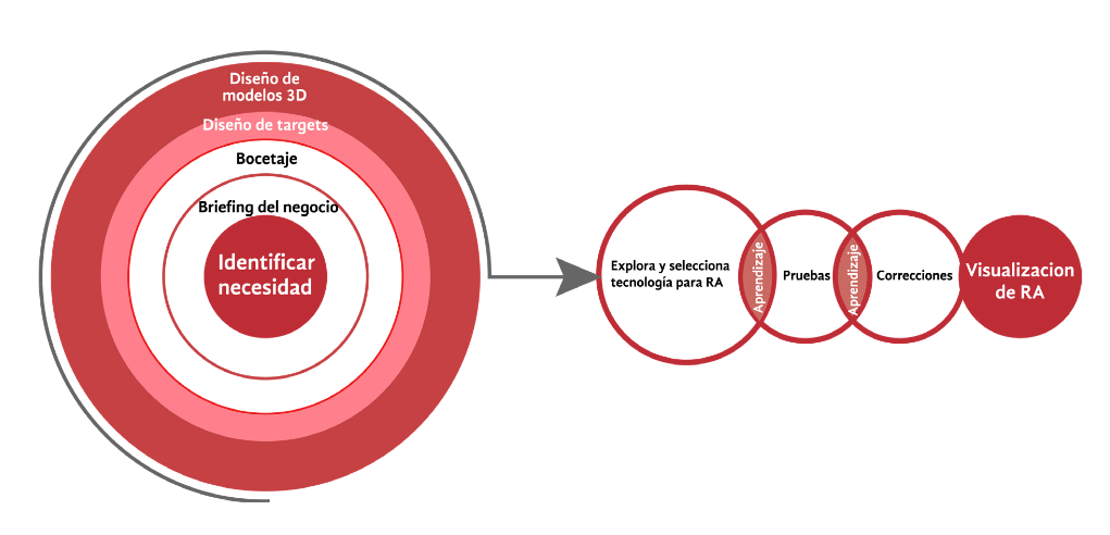 Actualmente, existen métodos para diseñar y desarrollar una aplicación en RA con conocimientos en desarrollo de software. En la figura 1 se presenta el método que siguieron los estudiantes para diseñar RA en función de un negocio donde se identificara la necesidad de implementar esta herramienta para mejorar la comunicación interna del negocio o con sus clientes.