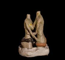 Guillo también contaba que los niños mostraban mucho interés en hacer armas cuando visitaban el taller. En esos casos, los animaba a que las hicieran con paciencia y bien para que el arma pudiera “disparar”. Sin embargo, en el contacto con la suavidad del barro por un largo tiempo —pues una escultura bien hecha, además de pintada, no se hace de un día para otro— empezaban a surgir preguntas sobre por qué tenían deseos de hacer armas, de dónde venía ese deseo, por cuáles historias familiares o personales estaban atravesados, etc. A partir de estas preguntas, los talleristas iban entendiendo su historia personal en el contexto social, con lo que emergieron otros sentidos de esculpir un arma. De este proceso surgió una exposición que se llamó Armas de paz (imágenes 8 y 9). Después de un trabajo cuidadoso para que cada tallerista hiciera su propia arma, decidieron convertirlas en artefactos inservibles: sin gatillo, con la terminación del mango como si fuera un pene, entre otras manifestaciones. En esta misma línea, hay centenares de esculturas eróticas (imágenes 10 y 11) hechas por niños y niñas, a pesar de la censura que la escuela tradicional ha hecho de la sexualidad.