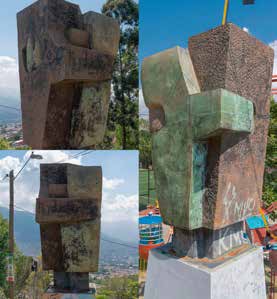 En ese contexto, Guillo interpeló a los jóvenes sicarios, milicianos y delincuentes cuando les dijo: “Odien, maten, insulten, pero con arcilla”.19 Él estaba convencido de que las balas expresaban una gran imposibilidad de comunicar la rabia, el dolor, el desacuerdo y el enojo por medios no violentos, pues en la lógica de morir o matar no había espacio para elaborar dichas emociones. Así, mostró que el problema no radica en la individualidad subjetiva de estas emociones “negativas”, sino en las violencias estructurales de la ciudad, ligadas al narcotráfico, el crimen organizado y el conflicto armado urbano. De este modo TallerarTe les abrió el mundo del arte para que pudieran imaginar y crear nuevas maneras de verse a sí mismos y a los otros por fuera de las lógicas violentas que la ciudad les imponía. Esta apertura del arte posibilitó verdaderos milagros, desde el cambio de vida de muchos jóvenes que dejaron las armas hasta el pacto de no agresión que se inició en 1995 en compañía de la Asesoría de Paz y Convivencia y que derivó en la creación colectiva del monumento La Perennidad (imágenes 2 y 3), instalado en el espacio público en 1997: