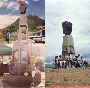 En esta explicación se deja ver que su propuesta utópica se dirige a toda la comunidad vecinal, barrial y comunal. De ahí que el monumento no estuviera pensado como un lugar de paso reverencial creado por un artista, sino como un espacio de encuentro callejero entre amigos, familiares y vecinos, creado por ellos mismos, para pensar e imaginar proyectos colectivos. Además, el hecho de resaltar las cuatro caras del monumento en dirección a los cuatro puntos cardinales implica una unidad con el espacio y con la naturaleza, un símbolo característico de los pueblos originarios. Este sentido de la orientación, donde el centro es la periferia de Medellín, revierte existencialmente la relación Sur-Norte,22 donde el nuevo norte es la comunidad barrial. Por último, en esta descripción se empieza a dibujar el sentido de familia comunitaria/comunal que sueña Guillo, la cual se aparta de los valores tradicionales y conservadores de la familia como institución.