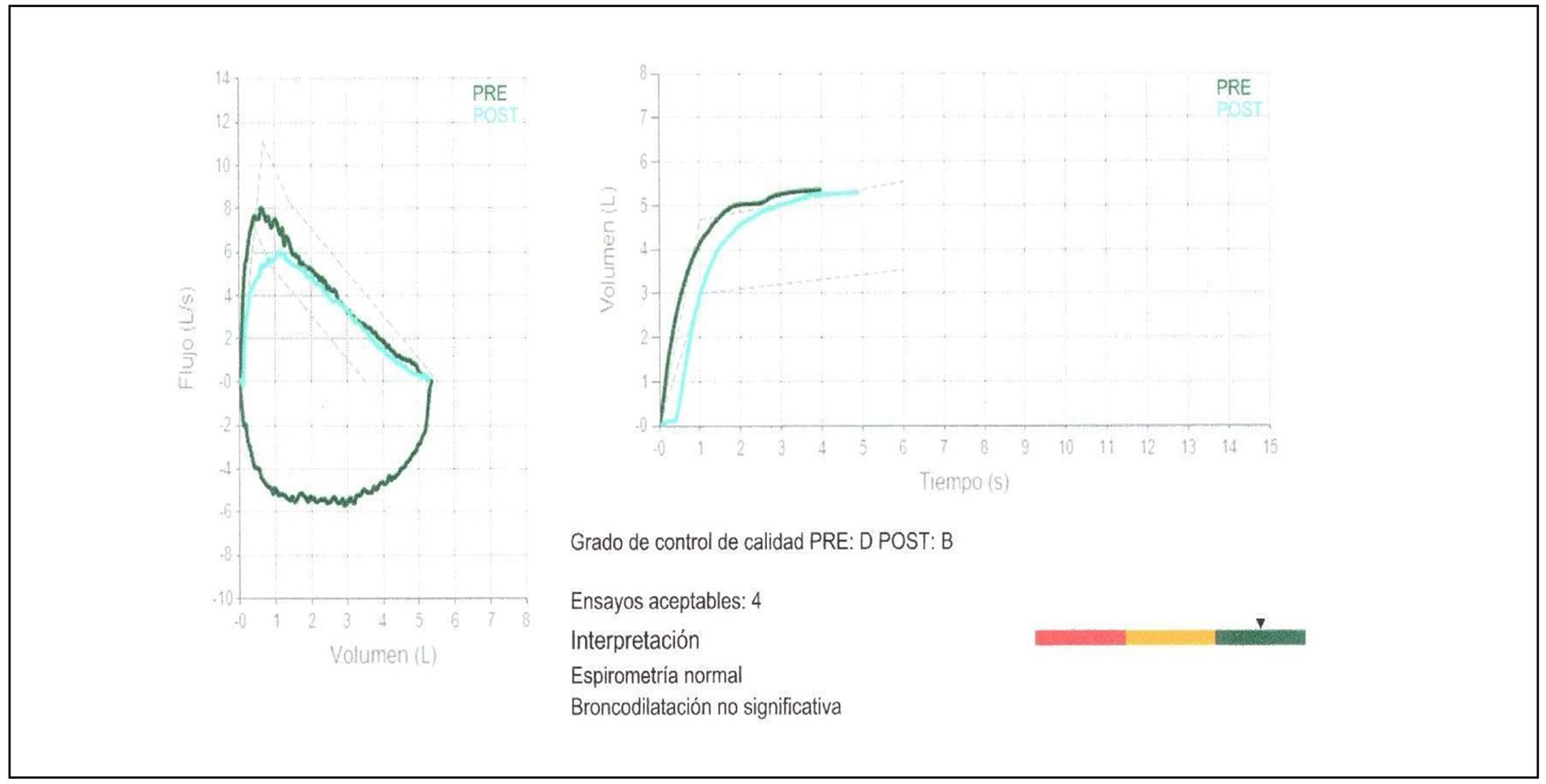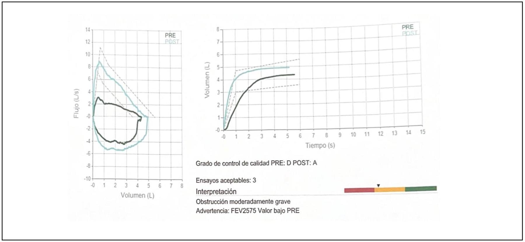 Espirometría: reportando patrón obstructivo moderado. Figuras 3 y 4