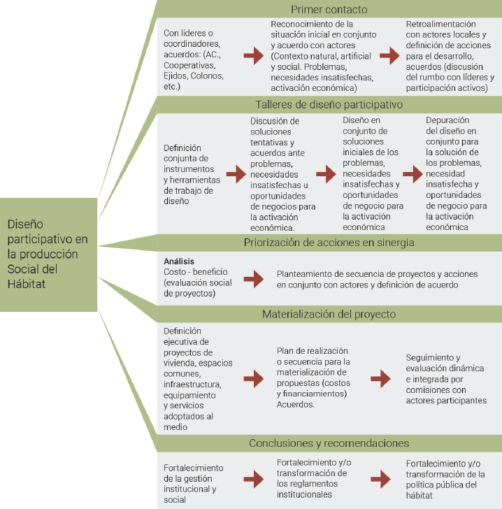 Fuente: Gabriel Castañeda Nolasco, Metodología de diseño participativo, Tuxtla Gutiérrez, Chiapas, Universidad Autónoma de Chiapas, Facultad de Arquitectura Campus 1, Taller de materiales alternativos, 2008.
